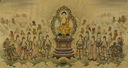 《佛说离睡经》前半部分乃述目犍连尊者独自在寂静处经行,不堪睡魔引诱,昏昏欲睡时,佛陀即以三昧力得知,便现其前,阐明十种离睡之法: 第一、莫行想,莫分别想,莫多分别: 昏沉时,不要随此睡意想着要睡。如果跟随睡意进行思维:这么瞌睡,就睡一觉吧!那就真的会被睡魔骗走了,这一次顺服,下次也会如流水般顺流而去。 分别想,就是有分别心的妄想。虚妄分别的念头,耗费神思心力,就脱离了定境,而落入昏沉陷阱。多分别,是指更甚一步,就是胡思乱想。 比如我以前有的时候,临睡前一会儿想想这,一会儿想想那,可谓联想丰富,想着想着迷迷糊糊就睡着了。如果逆此障缘,没有分别想,心中就会清净,心定则神思心力充足。 若睡意不离去,就用第二个方法。 第二、如所闻法,如所诵法,广当诵习: 应反覆读诵温习所听闻过、诵习过的经典。佛法无边,文字般若可谓字字珠玑。沐浴在佛恩中,就会法喜充满,精神振奋。 如果仍然想睡,再用第三个办法。 第三、如所闻法,如所诵法,当广为他说: 应为他人讲说所听闻过以及读诵过的经典。这里有一个时机的问题,如果二三同修都想离睡而精进佛法,则互通有无,解疑释惑,有的甚至在讨论中豁然大悟。 若睡意不离去,再用第四办法。 第四、如所诵法,如所闻法,意当念、当行: 所诵习、听闻过的经典法义,应如理思惟并身体力行。既然在此指出当念、当行之法,应该是对治烦恼收摄心神,关闭诸放逸之门的甘露正法,比如白骨禅观。 如果仍然想睡,再用第五个办法。 第五、当以冷水洗眼及洗身支节: 应该用冷水洗眼睛及身体四肢,这种冷水刺激的方法,会让你蒸蒸耗散的精气,回复小腹之丹田,令你振奋抖擞而精力充沛,所以非常有效。 若睡意不离去,再用第六个办法。 第六、当以两手相挑两耳: 用两只手同时搓拉、掏挑两个耳朵。耳朵是身体所谓的神经敏感区域,也是道家所谓上丹的一处守护根门。搓拉、掏挑之后,一是刺激之功,重要的是上丹之气因之平衡而不散失,所以能守精气而定神。 若睡意不离去,再用第七个办法。 第七、当起出讲堂,四方视及观星宿: 应当走出讲堂,环视四方,及仰望天空之星宿,以去除睡魔。 假如仍想睡,再用第八个办法。 第八、当在空处仿佯行,当护诸根,意念诸施,后当具想: 走到空旷处经行、跑香,收摄护持六根,念及我受十方之布施供养,只为修道度众,不应散乱、放逸。心有惭愧之后,必然勇猛精进。 若睡意不离去,再用第九个办法。 第九、举尼师坛敷著床上,结跏趺坐: 把坐具铺著在床上,盘腿而端身正坐。诸坐法中,结跏趺坐最安稳而不易疲倦。 若睡意不离去,就用最后一个办法。 第十、当还入讲堂,四叠敷郁多罗僧著床上,举僧伽梨著头前,右胁著床上,足足相累,当作明想,当无乱意,常作起想,思惟住: 应当回到讲堂,把七条衣叠好放在床上,九条衣放在头前,右胁而卧,两足上下相累。躺下后须作光明想,心不散乱,且常作起床之想,如此可令思惟安住稳定。 除睡魔咒 吉ji 帝di 安an 帝di 弥mi 帝di 昆kun 伽qie 帝di 羶shan 帝di 波bo 陀tuo 莎suo 诃he 很多的人在做重要工作和学习或是诵经、打坐时,经常被睡魔干扰,结果不是耽误了工作就是耽误了修行。令我们的修行长期年复一年的不能进步,实在是很大的困扰。这则咒语可以帮助大家降服睡魔,同时也要恭敬并供养掌管咒语的佛菩萨。否则咒语会越来越不灵。 如何做呢?大家在念诵的时候,尽可能的合掌低头,虔诚的念诵求佛菩萨加持驱走头顶上的睡魔。睡魔都是在人的头顶部施魔力的。并且最好还要加上经常的顶礼供养帮助我们驱睡魔的菩萨。 守护睡眠避邪真言 南nan 么mo 三san 曼man 多duo 勃bo 驮tuo 喃nan 信xin 正常的睡眠是一种休息和人体能量的补充。对于人类来说太重要了。但是现在社会很多人的睡眠质量不好,经常的失眠夜不能寐,或是遭遇如做恶梦、鬼压床,鬼附身之类的困扰,若想在睡眠时不被这些恶鬼所害,最好是在睡眠前,虔诚地祈祷持念这个咒语。最好能念108遍,越多越好。同样要恭敬的念诵,并且也要经常的供养礼拜掌管咒语的佛菩萨。 |