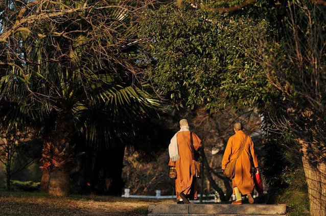 过去,有位智光长者请佛陀为大众宣说出家与在家之胜劣,佛以譬喻为说出家之殊胜。 佛言:“善男子!出家菩萨观三界内之舍宅,如牝马口海出猛火,能烧尽四大海及百川众流。往昔在罗陀国中,有一位妙得彼岸菩萨,此菩萨常以慈悲而饶益一切众生。 当时,有许多商人入海采宝,都是仰赖与菩萨同船,依靠菩萨的指引,脱离一切险难,顺利取得珍宝,安全返回。后来菩萨渐渐衰老,年已百岁,行动大不如前,起坐皆需旁人搀扶。 一天,有一商主到菩萨住所,礼拜、供养菩萨,并禀白:‘我准备出海寻宝,以脱贫转富,恳请菩萨与我同行。’菩萨回答:‘我已衰老,体力微弱,不能再出海了。’ 商主继续恳求:‘大士!请您慈悲怜悯我,接受我的祈请。您只要安坐在船中,我就安心满愿了。’商主再三恳求,菩萨慈悲应允,与商人同乘大船入海,向东南方宝所之处航行。 开船不久,遇强劲北风,船漂至南海,狂风继续昼夜不停的猛刮,经七日,众人见海水变为镕金色,便问菩萨:‘何故海水变为金色相?’菩萨答言:‘我们此时已进入黄金大海,此海中充满紫磨真金,因金宝交相辉映,所以有如此之相。你们已偏离正确航道,漂堕此海中,需努力设法还归北方。’ 菩萨虽叮嘱应设法转还北方,但众商人无力让船北返,船继续航行数日,海水变为如珂雪般洁白之色,菩萨说道:‘我们此时已进入真珠大海,因海中充满白玉真珠,珠映水色而产生如此之相。你们应当尽一切努力,设法回归北方。’ 又经数日,海水变为青色,色如青琉璃,菩萨言:‘我们已进入青琉璃海,此海充满无量青色琉璃,琉璃与水相映,故有如此之相。’ 再经数日,海水变为如血般的红色,菩萨告诉大众:‘我们已进入红玻璃海,无量红玻璃充满海中,故映成如此之相。’ 复又经数日航行,海水变为如墨汁般的黑色,船上之人听到远处传来猛火爆裂声,有如大火燃烧干枯竹林一样猛烈,极为可怖;又见大火起于南方,火焰丛聚如山峰,高逾百丈,焰势飞空散合,有如光流掣电般迅速,此诸景象见所未见,闻所未闻,众人皆惊怖,心想:此次性命恐难保。 菩萨告诉众人:‘现在情况非常恐怖、可怕!我们已入牝马口海,四大海及四天下大小河流,一旦进入此海,都会被猛火烧尽。此海是因众生之业力为增上力,故有自然天火烧此海水;设若天火不烧此海水,则一日夜中,大地皆将变为海而漂没一切众生。今我等遇大黑风,漂入此海,性命堪虑。’ 闻菩萨此言,船上千余人皆悲号啼哭,作如是言:‘我等为了寻宝而入海,却遭遇此种险难,要如何做才能脱离险难、保全性命?’众人于是虔诚祈祷,祈求能获救济,有呼唤父母之名,有称念梵天者,有称念摩醯首罗天王之名,有称念大力那罗延天者,乃至有人走向同船的彼岸菩萨,顶礼祈求:‘唯愿菩萨救苦救难!帮助我们度过危险。’ 此时,菩萨为使众人不再惊恐、怖畏,说道:‘世间最上大丈夫,虽入死门不生畏。汝若忧悲失智慧,应当一心设方便,若得善巧方便门,离诸八难超彼岸。是故安心勿忧惧,应当恳念大慈尊。’ 菩萨说完,立即焚香、礼拜十方诸佛,发愿:‘南无十方诸佛,南无十方诸佛,诸大菩萨摩诃萨众!四向四果一切贤圣,有天眼者、有天耳者、有他心通者、众自在者!我为济度众生而生大悲心,宁愿弃舍己身生命,以救济众生脱离苦难。我累世受持如来不妄语戒,无量生中未曾违犯。若我曾有一世犯妄语戒,此刻的恶风将转增剧大;若此戒德非虚妄,愿以持戒之善法功德,回向一切众生,愿我与众生皆得成就佛道。若我所言、所愿真实不虚,愿此恶风即时停止,如意之风随念而至。因为,众生身即是我身,众生与我平等无差别。’ 菩萨发起如是同体大悲、无碍大愿,刹那间恶风即止,转为顺风,众人得以脱离险难,顺利至宝所,寻获各种珍宝。 此时,菩萨告诉众商人:‘这些珍宝难逢难遇,你们是因为过去世广行布施,才能得到这些稀世珍宝;但过去行布施时,仍有吝惜不舍之心,因为这个原因,所以今世遇此恶风之险。现在你们得到珍宝,要知足,切勿贪多,以免因为贪心,尔后再遭灾难。应知一切众宝中,生命才是真正的无价之宝。’ 商人们听从菩萨的教化,心生知足,不敢多取,于是得以安度险难,获得大珍宝,远离贫穷,顺利返回。” 佛陀进一步开示:“出家能亲近诸佛菩萨、善知识,有所依怙,就像商人得遇妙得彼岸菩萨,依于菩萨,虽遇危难,卒能脱险;出家修行能出离生死到涅槃彼岸,如商人得离贫穷,获大富贵。世间所有一切舍宅,如牝马口海能烧尽所有河海。出家菩萨应如是观察在家种种过患,离诸欲乐,厌离生死,入清凉自在宝所。” 典故摘自:《大乘本生心地观经·卷第四·厌舍品第三》 省思: 佛以众商人依于菩萨之救护,而得出离牝马口海之险为喻,令吾等知出家之胜。《大般涅槃经》云:“居家迫迮,犹如牢狱,一切烦恼由之而生。出家宽旷,犹如虚空,一切善法因之增长。” “莫道出家容易得,皆因宿世种菩提”,出家精进修道,远离世间种种过患,并与诸佛菩萨、善知识、同参为善友,有所依怙。得以披剃出家,因缘殊胜难得,当生难遭难遇想,善护法身慧命,依善知识所教,不染世乐,精勤行道,以期得出离生死而达涅槃解脱。 |