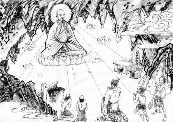 五、蒙师光照,逝者复活 大师于康熙十九年七月九日示寂,世寿五十五岁。当时有一名叫孙翰的人病逝,一昼夜又复活了。复活后云:“我被冥界的狱卒勾摄,到了阎罗殿下,黑暗中,忽然睹见光明炽盛,香华布满虚空,阎罗王赶忙伏地顶礼,迎送西归的大师。我问西归的大师是谁,回答是截流大师。我幸蒙大师的光明照触,得以放还阳间。”同一日,亦有一病死的吴氏子,一夕后也复活过来,陈述在阎罗殿所见到的情形,与孙翰所说的一样。