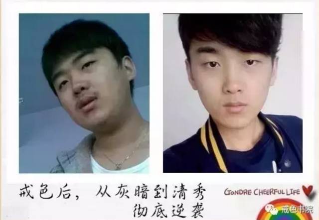 你长的不好看,真不是你爸妈的错! 长得不好看,怪谁? 长得不好看,跟自己没关系吗? 也许我们都听说过这样的一种说法“二十岁以前相貌是父母给的,二十岁以后相貌是自己给的”。 关于这个说法,我们听过的比较大众化的解释诸如: 20岁之前的相貌,人的自然性占的成分比较大,受父母遗传的因素多;而一个人过了20岁,他经历的事情多了,人生阅历增长了,人生经验增加了,气质、风度上都会有不同的变化,这个关键就在于个人的后天修炼了。 “相由心生”也大概这个道理,小编对此一直深以为然。然而,好的风度和气质没有经年累月的训练和沉淀是出不来的...... 难道,淫家只能这样丑一辈子?? 直到有一天,我发现了“相由心生”背后有着更深层的逻辑。 今天小编就尝试从这样一个更彻底的角度,来为你揭秘相貌与精气神的关系...... 精气、神,中医称为三宝 ,就是说明这三者对于人体极为重要。 其中,精是人体生长、发育以及生殖的物质基础。中医把精归于肾脏,《内经》说:“肾者主水,受五脏六腑之精而藏之”。并认为“肾精”乃是生命之本,阴阳两精相搏,合而成形,所谓“人始生,先成精”,然后脑、髓、骨、筋、脉、皮肉、毛发等形体组织逐渐生成,精为生命的基础,所以称肾为“先天”。 肾精,对于人体各方面都有着密切影响,我们先侧重在人体形貌方面展开。 肾精遗漏的方式有很多(具体我们将在以后的文章中再展开深入的探讨学习),其中最普遍也是最严重的方式便是——邪淫纵欲! 因此,本文就从大量戒友真实的案例中,代表性地挑选出部分,通过直接的戒色前后对比照,来辅证相貌与精气神的密切关系,也希望能让大家直观地感知到邪淫的危害。 我们更希望借这些不争的事实来唤醒那些还在邪淫的深渊中不能自拔的兄弟们,希望他们能早日迷途知返。 在上图之前,我们有必要先对其中原理做一个大概的了解。 中医有讲到,脸是五脏的镜子,而肾为五脏之根,纵欲伤肾掏空五脏,时间长了必然会反映到脸上,就像从新鲜的苹果慢慢变成了腐烂的苹果一样,整张脸都完全衰败了。 很多女人卸妆后判若两人,很多男人泄精后也判若两人。精气神就是一个人最好的化妆品。精气神泄掉了,容貌就枯萎了,就像苹果缩水干瘪、鲜花凋零枯萎一样。 精气神对脸庞有塑形去肿的效果,会收紧脸庞,让脸庞显得更紧致、更紧实,也会让五官更精致。 戒色恢复精气神之后,很多人完全脱胎换骨了,与之前邪淫的自己判若两人。相由心生,邪淫者有邪淫者的面容,很多邪淫的人,容貌都完全走样了,甚至面目全非,气质也变得异常猥琐。然而在戒色之后,容貌气质又会大大改善,邪淫的负能量渐渐消失,戒色的正能量开始慢慢增长,明眼人一看便知。精气神回来之后,就是不一样,差别非常之大。 下面,我们一起来看一些例子: 眼睛 邪淫者的眼神多带邪气、凶气、戾气,出现眼袋和黑眼圈的人也很多,眼周很容易发黑发暗;坚持戒色,眼神会变得善良而柔和,眼型也会发生好的变化。眼周又会重新明亮起来,眼袋也会有所减轻。 中医认为:“肝开窍于目”,肝肾同源,肾气不足,肾水便不能滋养肝木,两眼便无神,眼圈发黑。 肾气充足的人,眼睛清澈明亮,肾气充足的人,双眼奕奕有神 皮肤 肾精亏损的人皮肤出油多、痘痘多、触感粗糙等肤质差的问题,在戒色之后都会改善很多。皮肤变好了之后,整个人就会帅很多。 肾精亏损严重,五脏失衡,四大不调,皱纹也会随之增多,脸部显得很老,戒色之后皱纹问题也会有所改善。 肾中藏精,精是气的浓缩,精化成气。肾之气从肾中发出到达肝,肝气如果调达的话能够很顺畅地推到心,从心推到肺,从肺再推下来,脾胃斡旋当中。肾气再往上推动,由于肾气衰微推不到面部上导致的面部皮肤问题用化妆品也是没有效果的。 气色 肾气充足的人脸上放光,神采奕奕。相反,如果肾气亏虚,虚火上炎,脸上就容易长痤疮,色泽比较暗。 从西医的角度来讲,皮肤的好坏取决于内分泌的调节是否正常。 从中医角度讲,肺主皮毛,肺气足,皮肤就光泽;肝主血,肝血充足通畅,皮肤就红润。金水相生、肝肾同源,肺和肝都于肾有着密不可分的联系,肾水不足,肺阴空虚,皮肤就粗糙、毛孔大、干燥;肾水不足,水不涵木,肝血就不足,皮肤就苍白,没有血色,晦暗。 虚胖 伤精到一定程度,脸庞容易变形,以浮肿、变宽变大和松弛下垂等表现为主,凹陷也多见。戒色肾气恢复后脸庞会重新收紧,五官会变得精致有型。 中医认为,引起大多为湿,痰,水,瘀等三种,这是由于肺、脾、肾三脏功能失调,使水湿的运化功能发生了障碍,痰湿瘀浊,凝聚于体内的缘故。当这三脏失去应有的自我调节排泄功能,而导致无法将多余的水份及脂肪排出,进而囤积在体内,即谓中医论定的肥胖者。 脾主运化,一方面运化水谷,另一方面运化水湿,脾为生痰之源,可见脾是引起肥胖最关键的脏器。当脾主运化的功能失调或减退,吃进去的水谷精微向气血转化的能力减退,而向痰湿转化增强时,就有可能形成“气血不足、痰湿有余”的病理改变,表现出形似肥胖,但气色、体力都不足的症状。 中医认为“脾”主肌肉,能转运食物中的营养消化,以滋养全身。若真阳不足,脾失健运,身体运化功能失常,容易变成痰湿(脂肪)积存于肌肤之中,形成肥胖。 头发 伤精患者出现白发、脱发、发质枯黄等问题的比较多,中医认为“肾之华在发”,肾的精