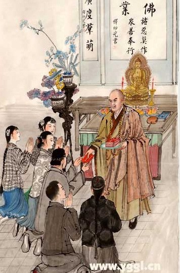 救灾捐济 普渡众生 一九一七年北京天津大水为灾大师极为关怀,与普陀山方丈,召集诸山长老成立赈灾分会,大师带头把仅有一些钱全部捐献出来 。 佛入犯心