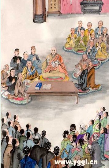 众僧钦佩 首次请佛 一八九七年夏大师应普陀山法雨寺众僧一再坚请,第一次开请弥陀便蒙钞,众生钦佩不已,从此和一些高僧谛闲,太虚,明阳,了余,圆英,了清,真达,妙真,了然,得森等以及名流居士西安王幼农,淮扬王慧常,江西许止清,嘉兴范昌农,上海冯梦华,王一亭,闻兰亭,朱子桥,屈文兴,黄涵之,吴纲之等建立了密切的联系和深厚的情谊,利用各种方式交谈净土业事 。 创办道场