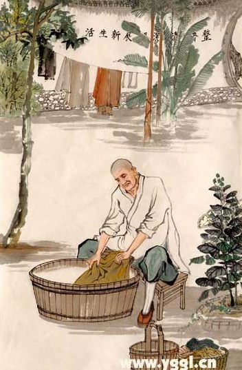 艰苦朴素 始终如一 大师自奉极薄,食则唯充饥,衣则唯求御寒,厌弃华丽,吃的白粥大众菜食至碗净并以开水冲净,菜汤余汁咽下,此种衣食俭朴自己洗涤的生活,几十年坚持不变,令人敬佩称赞 。 自知之明
