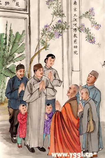创办慈院 普渡赤贫 一九二二年大师亲自参加其弟子在南京三汊河创办放生池,并订寺规,又亲自拿钱,并劝其募资帮助创办佛教慈幼院,后又在上海创办佛教慈幼院,心存慈悲,收养弃婴,教赤贫子弟。 告戒青年