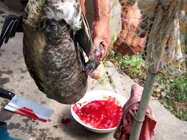 选取肥美的活鹅,拿小刀沿着鹅的肛门划一圈,再把食指插入鹅的肛门内,然后旋转,再用力向外拔出。这样一来就可以取到最新鲜的鹅肠了,但是鹅受到的痛苦实在是…… 10、炭烤乳羊