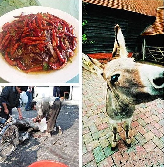 这道菜也是和驴过不去,将活驴固定好,旁边放上烧沸的老汤。食用者指定要吃某一部分,厨师剥下那一块的驴皮,露出鲜肉。用木勺舀沸汤浇那块肉,等浇得肉熟了再割下来,装盘上桌。据说吃这道菜的,大部分并不是为了吃菜而吃菜,纯粹就是为了看如何浇驴和驴的面目表情。 7、三吱儿