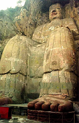 乐山大佛是目前世界上最大的一尊古代石刻造像,唐玄宗开元初年(公元713年)开凿,至唐德宗贞元19年(公元803年)完工,历时90年。该佛位于四川乐山市郊,现为世界文化遗产。 2、荣县大佛 通高36.67米 宋 石刻