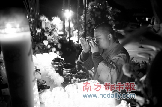 “师父,我来了……”昨日21时,印顺来到弘法寺后山本焕长老化身窑前,拈香,祭拜。昨夜,是印顺连续第四晚来为本焕守灵。 4月5日,在仪仗队的引领下,载有本焕长老佛龛的灵车,在印顺大和尚和众僧人护送下缓缓由法堂驶出,在佛号声中,绕弘法寺一周,到达后山荼毗法会现场。沿途信众撒下漫天菊花,以寄哀思。在荼毗现场,佛龛被抬至化身窑中,工作人员在佛龛上堆放檀香木块,遍淋檀香油灯后封窑。印顺大和尚等高僧为本焕长老举行法会,并进行了点火仪式,庄严、神圣,众信众祈祷本焕长老早日乘愿再来。 此前的荼毗仪式并未对媒体开放,昨夜,南都记者第一次跟随印顺来到本焕化身窑前。这是约数百平米的一块山间平地,寂静,清冷。本焕长老的遗像放置在化身窑前,一干弟子日夜诵经,多名安保人员昼夜守护。 印顺缓步走至本焕遗像前,敬香,叩拜。动作缓慢而笃定。 连日来,在化身窑旁一张临时搭建的帐篷内,印顺夜夜在此守候,整夜打坐诵经。“直到现在,我还是觉得老和尚没走,他的气息一直在我身边围绕,我的所思、所想、所念,都还是老人家。” 在本焕长老头七过后,在第四晚守灵的帐篷中,印顺接受了南都记者采访。 对话 南都:大和尚刚刚上山的清凉,和5日以前的人头攒动形成了很鲜明的反差。追思法会之后这几天,不知道您心中的感受有否不同? 印顺大和尚:5号忙碌了一天,当晚回来坐下静静地想,突然我被吓了一跳:师父走的那天是2012年4月2号,12年前的今天,我被师父带出家。 南都:这么巧?刚好一个轮回。 印顺大和尚:就这么巧,一天不多一天不少。 南都:本焕长老圆寂的当天、和之后几天您都没想到? 印顺大和尚:那几天,我的脑袋里各种事情塞得满满的…… 南都:您现在守灵,是佛教的仪规吗? 印顺大和尚:只要是人,都要感恩报恩,我守护师父,就是报恩,其实与仪规没什么关系。 南都:本焕长老当然“燃臂孝母”的典故已经传为佳话。 印顺大和尚:是的,师父说过,和尚要报四重恩,第一重就是父母恩。师父说,父母恩德难报,但一定要报!一个人,一定要好好孝敬父母,这对儿女是一个好的教育,儿女就会越孝敬父母。 南都:刚刚听弘法寺文化中心的工作人员说,本来是准备从今年清明开始,要做报恩法会的? 印顺大和尚:是啊,我是在今年春节的时候对老和尚说,希望以后每年的清明都做报恩法会,老和尚说很好啊,没想到他说好之后的这个清明就走了。 南都:做这个报恩法会,具体是怎样? 印顺大和尚:中国人的习惯,每年清明时节,都要回家扫墓祭祖,通过这种形式来表达对先辈的追思,报养育之恩。弘法寺考虑把清明的报恩法会沿袭下去,和老和尚每年生日时都举办的祈福法会相对应,在社会上推广报恩文化。 南都:怎样理解报恩文化? 印顺大和尚:知恩才能报恩,知恩、报恩才能感恩一切、包容一切,才能和一切众生结成善缘,也才愿意和身边的人分享自己的成果和喜悦。 南都:追思法会的时候,您的答谢词让很多人都流泪了。也是首次在公众面前回顾本焕长老最后时刻的细节吧? 印顺大和尚:对。 南都:当时您很动情。 印顺大和尚:其实到现在,当天我说过什么我自己都不记得了。 南都:哦?答谢词没有提前准备吗? 印顺大和尚:他们提前给我准备了一份,是标准的八股文。 南都:…… 印顺大和尚:都是套话,说和不说有什么区别?我想,我说的都是真心话,表达的都是心中的真情。而真情是不需要准备的。 南都:5号的追思法会,最后为本焕长老送行,有没有什么遗憾? 印顺大和尚:每一个人都尽了最大的力,否则不会这么圆满,我还能有什么遗憾呢?大家都通过自己的方式表达了对老和尚的敬仰和哀思。 南都:在老和尚的最后时刻,还有什么要告诉大家的吗? 印顺大和尚:老和尚走的当晚(记者注:1日晚),天空特别美,我出家这么多年从未见过,星星也出奇地亮。当时我就知道了,师父今晚要走。 南都:您是怎么知道的? 印顺大和尚:你问了和我的侍者同样的问题。当晚吃过晚饭,我就去冲了凉,那时候就知道,下一次有空冲凉要到哪天都不清楚了。当时我的侍者就觉得奇怪,因为我从来都没有这个时间冲凉的习惯,问我,我就说师父今晚要走了。然后他就问:你是怎么知道的? 南都:您是要抓紧时间休息一下是吧? 印顺大和尚:对,那时候大概晚上六七点钟吧,我让他晚上九点钟叫我。下一次睡觉要到什么时候我也不清楚。事实上,清明这些天,就是见缝插针地打个盹,没睡过完整的觉。 南都:今天晚上,您发出了一封感谢信,为什么选在这个时候? 印顺大和尚:不知道今天是否合适,我感觉,师父的头七刚过去,大家都应该安静下来了。没有大家,没有大家的善缘,就没有老和尚这么圆满的法会。每一个涉及到的政府部门、社会团体、法师、信众们,都忙碌了很久,现在,大家应该松一口气了,应该安静下来了。我也应该在这个时候,再对大家说一声感谢。 南都:感谢信之外,还想再对公众说点什么? 印顺大和尚:老和尚走了吗?他并没有走,他还在看着我们。我们每个人所做的一切,有了这样一份敬畏心,弘法寺就有希望,佛教就有希望,社会也有希望。 链接 本焕长老“燃臂孝母” 1948年3月,已经在上海普济寺小住半年的本焕突然接到家乡二哥的来信,说母亲病重,希望他能早日回家见上母亲一面。于是,本焕离开上海,回到湖北仓埠报恩寺结夏安居,每天徒步往返30华里地,白天在家照顾母亲,为母亲端茶送水,