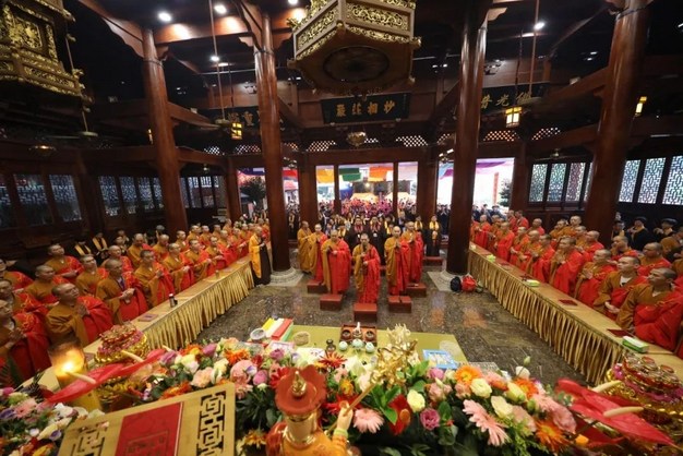 法事是寺院道场重要行事之一。在所举办的法事当中,有的是自我忏悔的方式,如忏摩;有的是经大众附议通过者,如布萨;有的是对大众宣说佛法,如升座说法;也有于新春时为国家、檀那祈福祝祷者,乃至到山门迎春等;一年当中更有春秋二祭,及三皈五戒、八关斋戒的多次举行等,方便社会大众参与修持。今略述数条于下: 一、布萨羯磨:僧团中,僧众若有犯戒者,则于大众前发露忏悔,称为“布萨”。凡与大众有关的决策,须经大众三次决议通过,称为三番羯磨。 二、忏摩请戒:三坛大戒中,每于登坛受戒前夕,由羯磨和尚引导戒子忏悔发愿,以便身心清净,纳受戒体。 三、护戒诵戒:僧团中受过菩萨戒的僧众,每半个月诵菩萨戒法一次,藉以勉励自己不忘发心,行菩萨道。 四、升座说法:丛林中,大和尚晋山就职,或逢节日庆典,乃至平日对大众说法,都称为升座。升座就是正式对外宣布、通告。例如新春升座即正式昭告一年的行事。 五、年庆祈祷:丛林中,在大年初一的早课时,大众一起唱赞、诵经,为国家祈祷国泰民安,为护法檀那祈求福慧圆满。所以《宝鼎赞》中有“端为世界祈和平,地久天长”。 六、山门迎春:丛林生活,僧众平日不轻易走出山门,唯过年时,在初一到十五的某一天,早课后,由大和尚或监院领导大众,从大雄宝殿到山门外巡礼参访。 七、上灯胜会:灯代表光明,点灯主要是点亮自己的心灯,因此,信徒在佛前点灯,是表示佛与人的心光互相辉映。 一般寺院均在新春期间举行上灯法会,江苏省的扬州,有所谓:“十三上灯,十八落灯,十九算帐,二十开张。”在台湾的北港灯会是从农历二月一日才开始,佛光山则自农历正月初一开始举行半个月的春节平安灯法会。 八、结夏解居:结夏就是结夏安居,日期为每年农历四月十五日,解居则于农历七月十五日。另有冬安居,是于每年十月十五日至隔年一月十五日解居。 九、大座讲经:以讲经为主,讲演前先唱香赞、钟声偈等,并有信徒请法等仪式,是一种解行并重的佛事法会。 十、三皈五戒:指皈依三宝及受持五戒。皈依是皈依“佛法僧三宝”,乃至“自性三宝”,皈依即是肯定自己、尊重自己;受持五戒则是尊重别人、不侵犯别人的善行。 十一、八关斋戒:提供在家信徒学习出家生活,培养出离心,而于一日一夜远离家庭,进住寺院,并持守八条戒。过去一般均于六斋日举行,现在一般寺院均在星期日举行,一个月举行四次。 十二、家庭普照:以信徒家中为聚会场所,一般均邀请法师主持并说法,透过轻松的佛法座谈方式,增进参与者对佛法信仰的理解及解答有关信仰、行持上的疑问。 十三、供佛斋天:供养三宝并请诸天吃饭,台湾习俗称为“拜天公”,佛教则称为“供佛斋天”。一般于农历元月初九举行。 十四、春祭秋祭:指农历四月清明法会与七月孝道月的报恩法会,称为春秋二祭。 十五、生亡普佛:指延生普佛与荐亡普佛。延生普佛用于消灾、作寿、喜庆;荐亡普佛用于往生、超荐、冥寿。普佛者,即对三世一切诸佛普遍恭敬,普遍礼请,普遍结缘的意思。 十六、三时系念:元朝中峰明本禅师着。属净土法门,主要目的是藉着系念阿弥陀佛万德洪名,超荐亡灵往生西方极乐世界,永离业海,直证不退,圆满无上菩提。 十七、蒙山施食:为超度亡者举行的施食法会,有大小蒙山之分。源于宋朝不动法师(也称甘露法师)于蒙山所发起,后由上海兴慈法师大力倡导,今日一般寺院大都于晚课后随堂施放小蒙山。 十八、盂兰盆会:是藉着供佛斋僧的功德,以解救饿鬼脱离苦趣,并且报答七世父母恩德的佛事法会。一般寺院道场均于农历七月十五日举行。 十九、瑜伽焰口:施放焰口,能令饿鬼得度,也是对亡者追荐的佛事之一。除了施食,以解除饿鬼的饥虚之外,最重要的是为他们说法、皈依、授戒,令其具足正见,不再造罪受苦,以祈早日脱离苦趣,成就菩提。 二十、水陆法会:中国佛教中,仪式最隆重、功德最殊胜的法会,着重对水陆众生的普济,除了施食,并有诵经持咒的法施,可令受苦众生心开意解。 弘法利生是寺院的使命,虽然接引众生的法门很多,然而八万四千法门,皆是不离佛语,重要的是,要能应机教化,应病与药,如此才能示教利喜,接引众生悟入佛的知见。 |