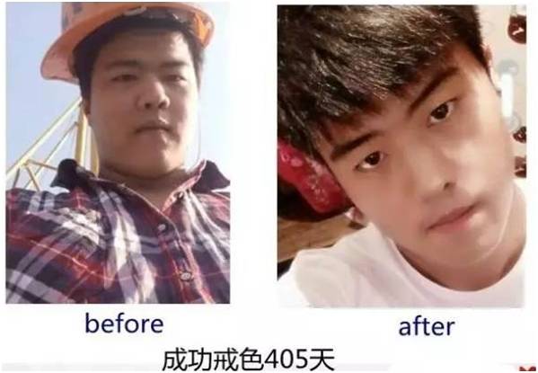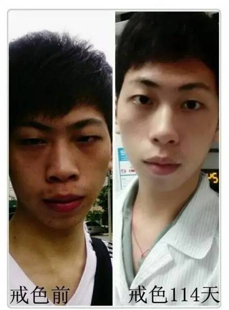 戒色对比图,震撼巨献!超给力! 精气神是人身的三宝,精化气,气生神,神御形!有神无神,天壤之别,失之毫厘,谬以千里。中医有讲到,脸是五脏的镜子,而肾为五脏之根,手淫伤肾掏空五脏,时间长了必然会反映到脸上,就像从新鲜的苹果慢慢变成了腐烂的苹果一样,整张脸都完全衰败了。精气神就是男人最好的化妆品,很多女人卸妆后判若两人,而很多男人泄精后也判若两人,精气神泄掉了,容貌就枯萎了,就像鲜花枯萎一样,真是落毛的凤凰不如鸡。 精气神对脸庞有塑形去肿的效果,会收紧脸庞,让脸庞显得更紧致、更紧实,也会让五官更精致。戒色恢复精气神之后,很多人完全脱胎换骨了,与之前邪淫的自己判若两人。相由心生,邪淫者有邪淫者的面容,很多邪淫的人,容貌都完全走样了,甚至面目全非,气质也变得异常猥琐。然而在戒色之后,容貌气质又会大大改善,邪淫的负能量渐渐消失,戒色的正能量开始慢慢增长,明眼人一看便知。精气神回来之后,就是不一样,差别非常之大。 大家都应该好好感谢分享对比照片的戒友,他们真的是做了大善事,分享自己的对比照片可以唤醒、激励和警醒成千上万的人,很多戒友看了这些对比照片,就会变得格外振奋和充满动力。对比照片在劝戒方面的效果是非常好的,不少戒色前辈也注意到了这一点,希望越来越多的戒友能够分享自己的对比照片,你的这一善举将会激励和振奋无数的人! 以下是变化: |