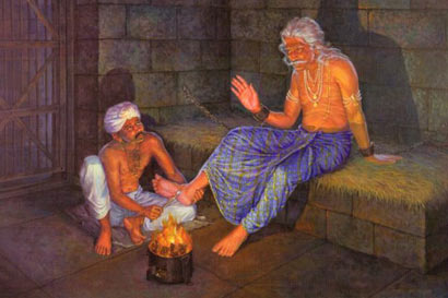 阿阇世王去见佛陀,却又心存犹豫。 提婆达多灭亡以后,阿阇世王并不因他的灭亡而悲哀,反而在他的八识田中感到这是罪有应得,原来阿阇世王已逐渐有了悔意。 有一天,阿阇世王在睡梦中见到他的父亲频婆娑罗王微笑着对他说道:“阿阇世!我是你的父亲,你虽然企图杀害我,但我不怨恨你,我是佛陀的弟子,我愿以佛陀的慈悲来原谅你。你终是做过我的儿子,我为你祝福,祝福你早日悔悟,走上光明的正道来。”阿阇世王醒来很难过,左右思维父亲的慈爱,想到自己无理的杀害父亲,感到非常的后悔。 有一天,阿阇世王和母亲韦提希夫人共桌吃饭,吃饭的时候,他没有看到儿子优陀耶,就问侍从:“优陀耶到哪里去了?把他找来一起吃饭!”侍从回答说:“优陀耶在和狗一起玩。”侍从把优陀耶叫来的时候,优陀耶的手中还抱了一条小狗,阿阇世王问他道:“你怎么不吃饭呢?”优陀耶撒娇着回答道:“没有同狗在一起,我不吃饭。”阿阇世王只得让他去,他们就共在一张桌上吃饭,吃了一会,阿阇世王对母亲韦提希说道:“我是王,为了爱儿子,居然同狗在一起吃饭,这真不好看。”韦提希国太夫人道:“同狗在一起吃饭,这有什么了不起?吃狗肉的人都有。你现在为了爱儿子和狗在一起吃,你就挖苦起来,其实你的父亲对你比这更大的事都有,不过你不知道罢了。当你在很小的时候,手指上生出痈来,苦痛万分,日夜都不能睡觉。你的父亲抱着你,把你放在膝上,用口含着你害痈的手指,所以你才能减少痛苦。有时,因为口里的暖气,你害熟了的痈中流出脓来,你父亲怕惊动你的睡眠,他只得吞下流出的脓。你的父亲是这样的爱你,为了他的孩子,别人做不到的事,他都做得出来。”阿阇世王听到母亲韦提希夫人这么一说,默默的放下饭碗,站起来,走到邻室走,他从此再也不感觉到王者的荣耀欢乐,他的心中像被一块大大的石头压着。 阿阇世王的业报现前,身上又生满很多的痈,心里不时有着悔恨的负担,他就对朝中大臣们道:“现在我的身上和心上都患了重病,一定是由企图杀害父王的罪而起的,谁能替我医治呢?”大臣中有门师外道月称等,用种种邪教企图说明为国杀父是没有罪业的话来安慰阿阇世王的心,但阿阇世王听他们的话没有动心,只有加深他的悔恨。 那时名医耆婆前来探病,问道:“大王!现在贵体觉得怎样?”阿阇世王摇头道:“耆婆!我的病很沉重,不但身体上有病,心里的病实在很苦。我想,就是有良医、妙药、咒术,都不能为我治愈的,我日夜睡在床上,忧愁苦闷,呻吟叫喊,不能入睡。耆婆!你虽是天下的名医,这一次怕你也不能救我了。”耆婆很慎重的说道:“大王!你不要这么失望悲伤,现在世界上能救大王的人除了佛陀以外,我想的确是没有第二个人了。”耆婆说这话的时候,阿阇世王的侍从人等颜色大变,他们都怕耆婆触怒王上,但是阿阇世王这次没有发怒,默默的闭起眼睛,耆婆察知阿阇世王的心就说道:“大王!我是一个医生,医生即使医治身体上的病,但决不能医治心里上的病。佛陀是无上医王,只要大王肯拜见佛陀,佛陀一定欢迎。佛陀好像无边的大海,他能容纳百川众流,大王的苦是从心生,要把心上根本的病医好,才能医身上的病。”阿阇世王点点头说道:“耆婆!你说得很对,我也想去拜见佛陀,不过我又怕佛陀因我是有罪的人而拒绝,加之我和提婆达多做的事都很对不起佛陀。”耆婆知道阿阇世王此刻惭悔的心,所以又再进一步说道:“大王!你的罪,先王在临去世的时候,我听说他已经原谅你,先王是佛陀的弟子,佛陀的弟子都能原谅你,何况众德圆满大悲普济的佛陀呢?大王!我常听佛陀讲,人若造了罪恶,怀着惭愧的心情,在三宝之前恳切致诚的惭悔,罪过就可以消除,业障也会减轻。大王虽然一时不智,造了罪业,但照佛陀惭愧忏悔的法门,大王仍然是可以得救。我看大王,现在已知道惭愧忏悔,这就是大王新生的开始。我又听佛陀讲过,有智慧的人,他是不敢造罪,就是不慎造罪以后也知道忏悔;愚痴的人,他是造罪不改,以及造罪覆藏。大王若能到佛陀的座前告折忏悔,表明不敢再犯,佛陀的慈悲之光,一定会庇佑到你。大王!智者不覆藏罪业,佛陀常说,做人要深信因果,深信业报的丝毫不爽,世界上不可救的只胡阐提,大王不是阐提,一定能获得佛陀的救济。佛陀的慈爱无量无边,惠施给一切众生。佛陀是不分冤亲憎爱,贫富贵贱,都是同等的救度。佛陀准许尊贵的跋提王子等出家,但也准许下贱的优波离出家;佛陀接受富翁须达多长者的供养,但也接受贫穷者的布施;佛陀感化不为欲染的大迦叶加入僧团,但敢方便劝贪欲的难陀披剃;鬼子母和鸯崛魔罗,别人听到名字就怕,而佛陀却去找到他们度化,佛陀对什么人,都视同罗睺罗,请大王千万不要再有疑虑!大王!我讲出来真是恐慌得很,但我又不能不忠实的告诉大王,现在佛陀带领他的弟子一起都到我的梨园中来说法,希望大王速去拜访,把心中的乌云除去,现出朗朗的晴空,这是千载难逢的机会,我恳求大王不要错过!”阿阇世王听以后,眼中放出悔改和希望的光彩,对耆婆说道:“你说的话我很高兴听,请你为我选择一个吉日良辰,我一定要前去拜访佛陀,哀求忏悔。”耆婆不以为然地摇头道:“大王!佛陀的教法中是没有吉日良辰的迷信,佛陀常常教诫诸弟子不准卜卦算吉凶。修学正法,依正法而行,什么时候都是吉日良辰,大王最好即刻就起驾动身吧!” 阿阇世王很欢喜,