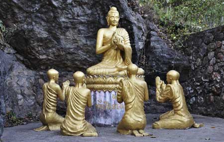 护国王子听佛陀法音,当下发愿出家。 一日,佛陀在拘毗罗国城外吐罗树下入定,察知王子护国的得度因缘已经成熟,于是率领大众比丘前往城中度化。 佛陀一踏入城里,大地涌现六种震动,空中也落下无数美妙的花朵,佛陀的身上散发着慈光,无私地照在城内的每一个角落。因为佛光,盲者能看,聋者得听,哑者能语,而不良于行的跛者则能行动自如,大众此时都欢喜无比地来到街道旁,迎接佛陀的到来。 在皇宫内的护国王子,见到如此无与伦比的慈光,赞叹不已,立刻循着光明来到佛前。当他看见佛陀的相好庄严、威仪具足,如同百千个太阳的光芒,普照十方大地,欢喜之余立刻顶礼佛足。此时,佛陀慈悲为王子宣说苦、集、灭、道四谛法门。听到佛陀的法音,护国王子心开意解,当下证得须陀洹果,进而生起出家修行的愿心。 回到皇宫后的护国王子,高兴地告诉国王种种经过,赞叹佛的功德不可思议。他说:“佛陀若未出家,必是转轮圣王,能力足以统治天下,常有七宝随身,不管到哪里都能自在无碍。佛陀具有如此福德,尚能舍离世间的种种荣华富贵,出家修行,何况是福德、智慧都不如佛陀的我呢?所以儿臣请求父王允许我随伟大的佛陀出家修行。” 听到护国王子的请求,国王遮耳不听,拒绝了护国王子的请求。王子见到国王的反应,懊恼自己的福德不足,深自忏悔。从那时起,就拒绝进食,思惟佛陀的教诲,一天、两天,一直到第六天,护国王子欲出家修行的道心坚固,依然不肯进食。 朝中大臣见王子愿心坚固,已经断食六日,都非常担心,于是他们一起向须提王建议:“王子已六日未食,若继续如此,命恐不保。请国王答应王子的请求吧,至少未来您还能与王子相见啊!”须提王听了大臣们的建议后,终于答应了护国王子出家的请求。 护国王子即刻前去求见佛陀,以至诚恭敬之心顶礼佛陀,恳求出家。世尊应许,说道:“善来比丘,须发自落,法服着身。”话一说完,护国王子即现比丘相。精进用功的护国比丘不久即证阿罗汉果,不仅具足三明六通,亦得八种解脱,诸天天人及世人无不对其敬仰赞叹。 大众比丘见到护国比丘如此殊胜的果报,都非常欢喜赞叹,于是请示佛陀:“世尊,护国比丘于过去生如何植福,能够生于帝王之家,且出家不久,即证得阿罗汉?请世尊慈悲为大众开示。”于是佛陀为诸大比丘开示前世宿因。 无量世以前,波罗奈国的国王毗提发起战争,与邻国须提王打仗,结果须提王打了败仗,带着军队沿路撤退,躲避毘提王的追兵。军队来到一片荒地,不但没有食物,也找不到水源,在当时炎热的气候下,所有的人都几乎饥渴而死。就在大家绝望之际,须提王突然想起,不远处即是辟支佛的住所,于是前往求救。辟支佛不但带领须提王及他的军队到一片水草地,解决饥渴之患,还指引他们回家的路。 若非辟支佛的指引,所有的军队恐怕早已在荒地中饥渴而亡。回到国内的须提王非常感念辟支佛的恩德,为报佛恩,须提王准备种种上妙饮食,恭请辟支佛到皇宫应供。供养毕,辟支佛即示现涅槃。当时国王、大臣及后宫的嫔妃、仕女们无不感到哀伤而号啼哭泣,难过不已。为了感念佛恩,国王于是造塔供养佛舍利,让大众瞻仰礼拜。 佛陀告诉大众:“过去的须提王,就是现在的护国比丘,因为至诚的供养功德,生生世世不堕地狱、畜生、饿鬼道中,于天上人间享受尊荣豪贵;并于今世跟随我出家修行,得道证果。”诸比丘闻佛所说,皆信守教诲,欢喜奉行。(《撰集百缘经•卷九》) |